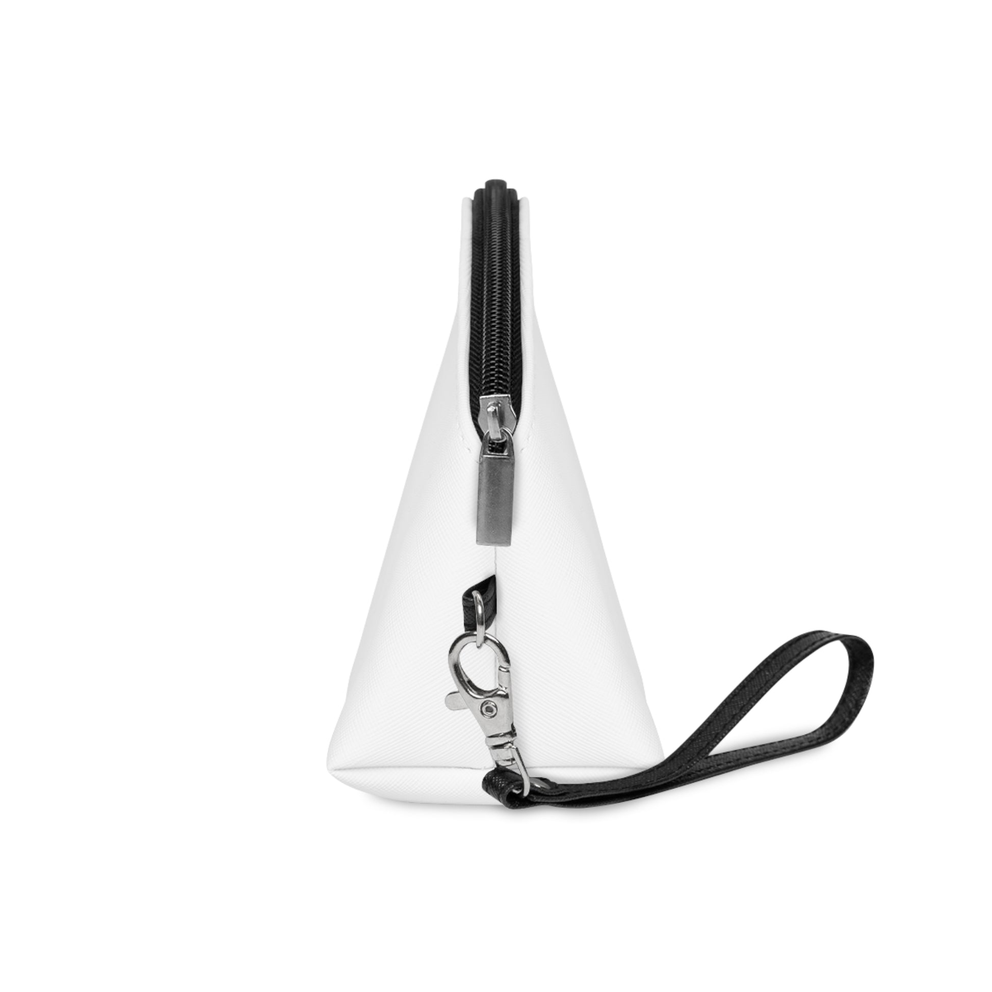 There's more to makeup bags than meets the eye. Their main purpose is to store cosmetics, but they're often used to carry travel essentials, like cables, headphones, medicine, hygiene products. Some even use them as art supply cases. These curve-top bags will be the top multi-purpose item in any home with your unique design. They have a zipper for safety and a removable leather strap for comfort.